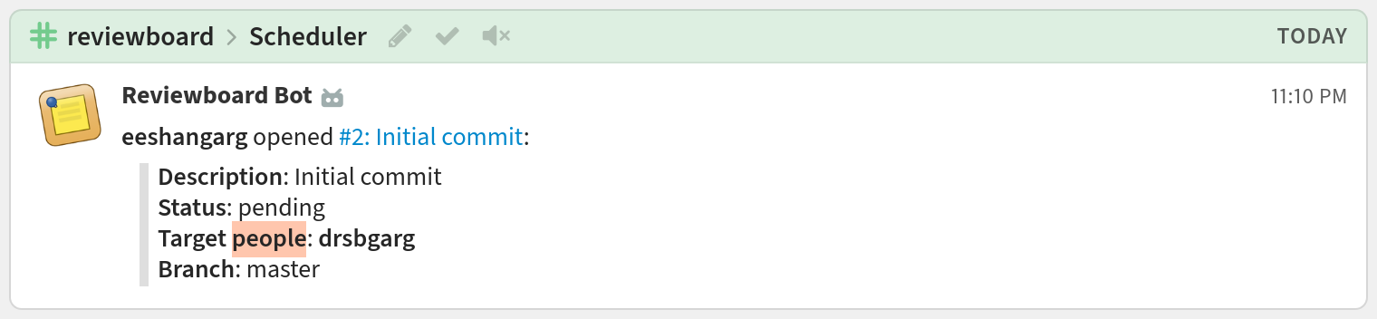 1. Create a bot for Review Board. Make sure that you select Incoming webhook as the Bot type.
