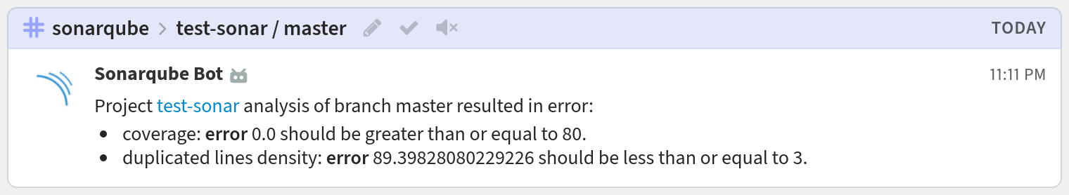 2. Decide where to send SonarQube notifications, and generate the integration URL.